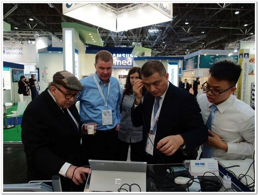 堅守在9號館十余年,作為全球領先的超聲經(jīng)顱多普勒(TCD)制造商,深圳市德力凱醫(yī)療設備股份有限公司再次攜自主研發(fā)的全數(shù)字寬頻及便攜式超聲經(jīng)顱多普勒(TCD)參加此次盛會。德力凱EMS-9D初啼試聲,便緊緊抓住了各國經(jīng)銷商的目光,其精巧的結(jié)構(gòu),簡潔的外觀,創(chuàng)造性的將無創(chuàng)血壓與TCD相結(jié)合,凸顯了德力凱在超聲領域的技術沉淀,其優(yōu)秀的技術轉(zhuǎn)換能力將劍橋大學Peter教授的神經(jīng)監(jiān)護軟件ICM+完美的結(jié)合與一體,為經(jīng)銷商們打開了新的市場領域。