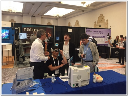 圖一我們的機(jī)器在神經(jīng)重癥監(jiān)護(hù)應(yīng)用的培訓(xùn)會(huì)中的使用,工程師正在調(diào)試。 圖二美國(guó)TCD領(lǐng)域大師Alexandrov在使用我們的TCD對(duì)與會(huì)醫(yī)師進(jìn)行培訓(xùn)。 稍后的廠商展示環(huán)節(jié),德力凱的機(jī)器也吸引了眾多目光 產(chǎn)品的獨(dú)特性以及優(yōu)秀的表現(xiàn),讓中外專家皆為之駐足。