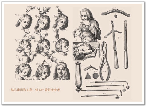 更甚的是,又有誰知道,13世紀(jì)的一本希臘外科醫(yī)學(xué)書籍中推薦癲癇也可以采用鉆孔,“讓體液和氣體散出去蒸發(fā)掉”。這就像是放出氣球里面的氣體,是不是?顱骨上開了一個(gè)安全出口,引發(fā)疾病的魔鬼就會(huì)倉皇而逃。