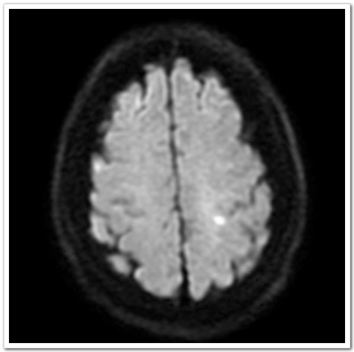 圖1:MRI:左側(cè)頂葉皮層急性腔隙性梗死灶