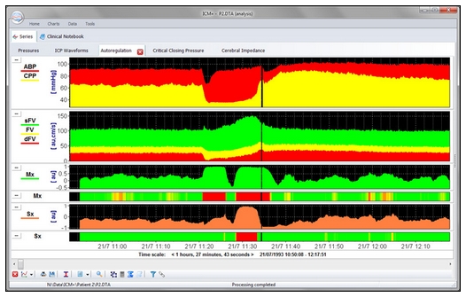 3、德力凱高端TCD具有的8路模擬信號(hào)輸入、8路模擬信號(hào)輸出功能,將其他設(shè)備的重癥監(jiān)測(cè)信號(hào)接入,其同時(shí)搭載的劍橋ICM+定制版軟件分析平臺(tái),除了可以將所有信號(hào)同步實(shí)時(shí)顯示以外,還通過(guò)科學(xué)權(quán)威算法,對(duì)參數(shù)進(jìn)行整合、分析,計(jì)算得出二次參數(shù)如:腦血流自動(dòng)調(diào)節(jié)參數(shù)、無(wú)創(chuàng)顱內(nèi)壓、最優(yōu)腦灌注壓等等。實(shí)現(xiàn)真正的“重癥多模態(tài)同步監(jiān)測(cè)”,起到真正指導(dǎo)臨床的作用。