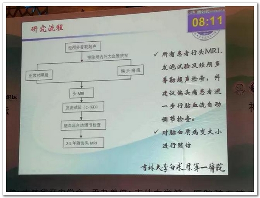 次日,吉林大學(xué)第一醫(yī)院邢英琦教授從研究背景、研究方法、研究結(jié)果、結(jié)論與展望四個(gè)方面同大家交流了當(dāng)前的腦血管研究病熱點(diǎn)——“偏頭痛與右向左分流-一項(xiàng)全國多中心研究結(jié)果與展望”。報(bào)告中,邢教授展示了與德力凱公司合作研發(fā)的智能化發(fā)泡實(shí)驗(yàn)軟件和正在審查中的專利成果“一種發(fā)泡實(shí)驗(yàn)檢查的數(shù)據(jù)處理方法及系統(tǒng)”。同時(shí)為了深入研究右向左分流、偏頭疼與腦白質(zhì)病變的關(guān)系,邢教授邀請(qǐng)各位醫(yī)學(xué)同仁參加吉林大學(xué)第一醫(yī)院倫理委員會(huì)批準(zhǔn)開展的中國偏頭痛患者腦白質(zhì)病變與右向左分流相關(guān)性研究。該研究為觀察性研究,從該研究中得到的信息將幫助醫(yī)生分析偏頭疼患者發(fā)生腦白質(zhì)病變的原因,為醫(yī)療相關(guān)部門制定偏頭疼患者預(yù)防及干預(yù)指南提供客觀依據(jù),獲得了在座專家的熱烈反響!