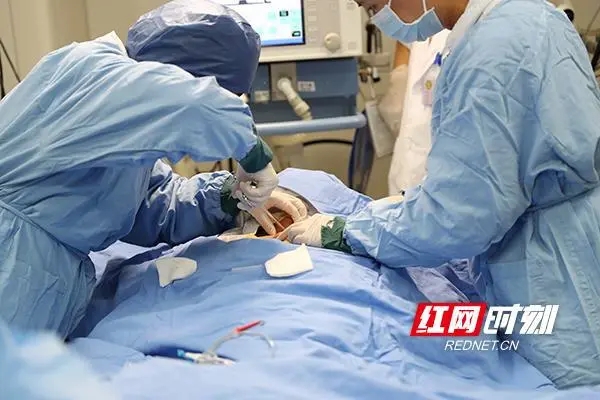 下午3點,醫(yī)生正在給病人安裝氣管支架手術。記者 陳杰 攝