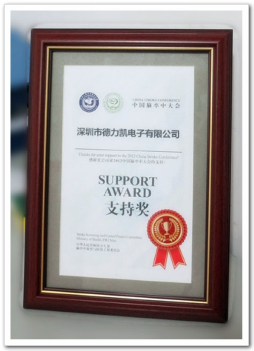 大會(huì)同期表彰了在2011—2012年度中為“腦卒中篩查及防治工程”的推動(dòng)做出杰出貢獻(xiàn)的相關(guān)企業(yè)。深圳市德力凱電子有限公司等十三家企業(yè)獲得衛(wèi)生部“腦防委”表彰,并頒發(fā)“支持獎(jiǎng)”獎(jiǎng)牌。