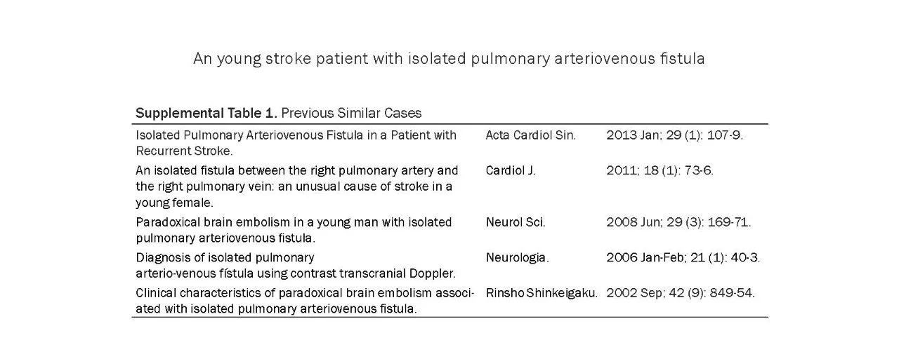 病例報(bào)道: 單發(fā)肺動(dòng)靜脈竇:診斷青年卒中的一些見解