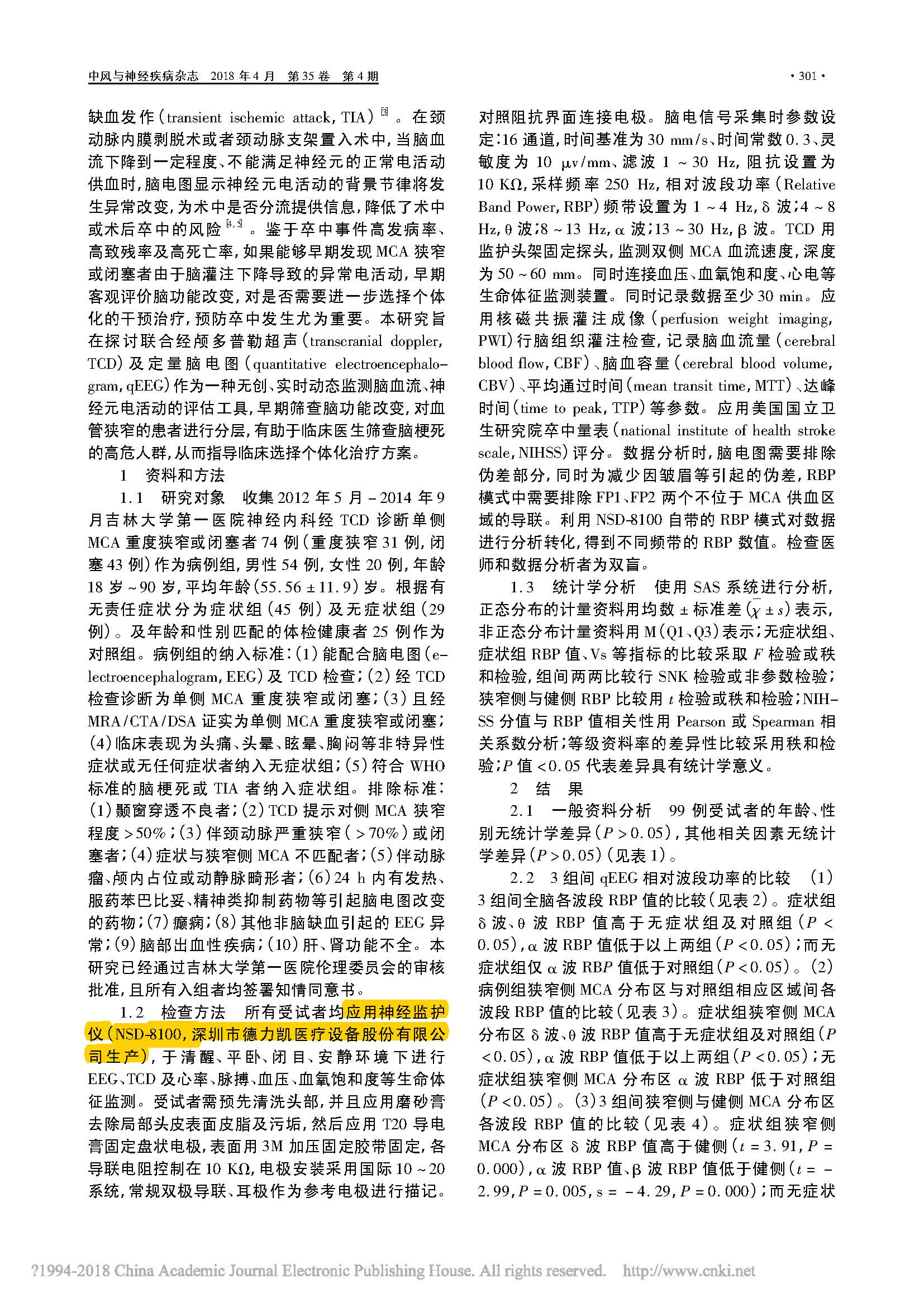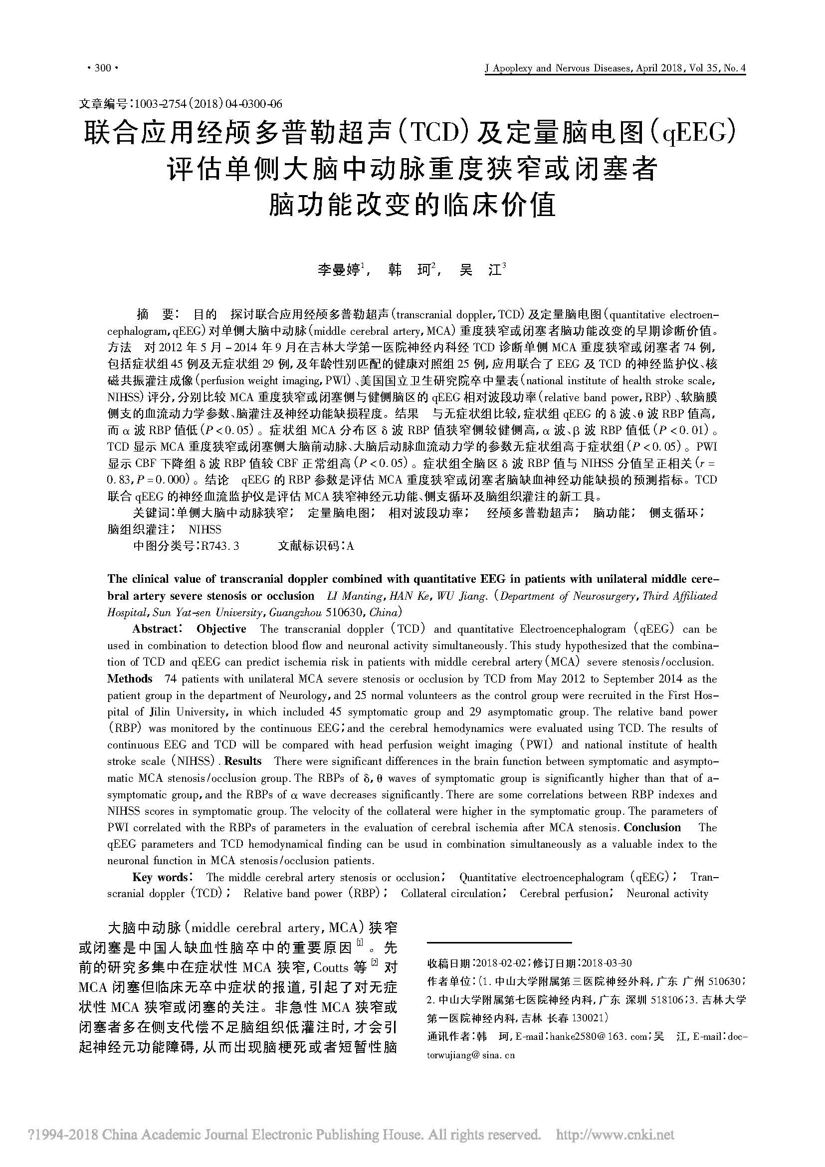 聯(lián)合應(yīng)用經(jīng)顱多普勒超聲_TCD__省略_狹窄或閉塞者腦功能改變的臨床價(jià)值_李曼婷